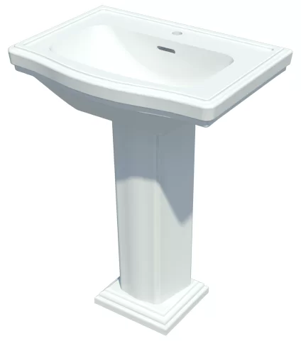 Classically clean lines are featured in this pedestal lavatory. With large backsplash, rear overflow, and a luxuriously deep basin. Universal height.